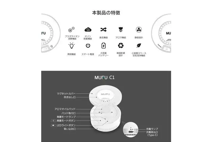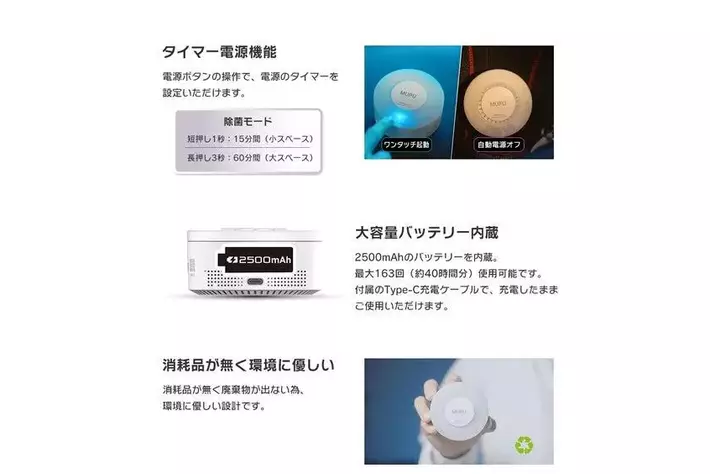 プラズマイオン&オゾンで強力消臭!大容量バッテリー内蔵で満充電すると約40時間使用可能!