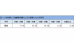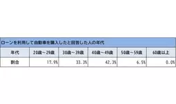 <「自動車購入とローン」に関する調査を実施>利用者の割合が一番多いのは40代という結果に