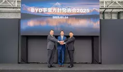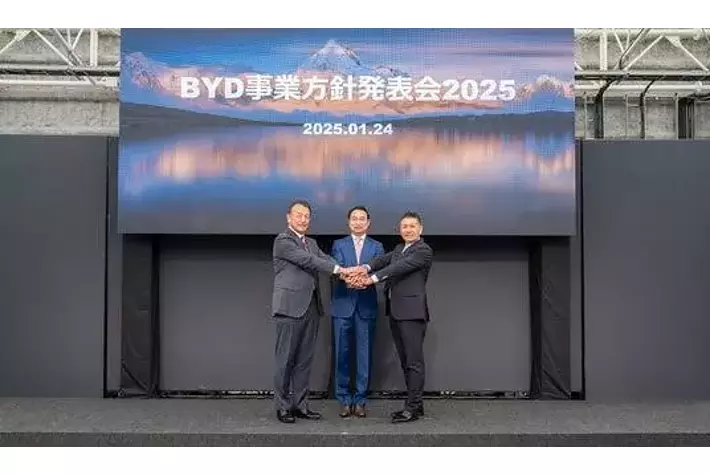 BYDの日本法人であるビーワイディージャパン株式会社(本社:神奈川県横浜市、代表取締役社長:劉 学亮、以下:BYDジャパン)とBYD Auto Japan株式会社(本社:神奈川県横浜市、代表取締役社長:東福寺 厚樹、略称:BAJ)は、2025年1月24日(金)シティーサーキット東京ベイにて、「BYD事業方針発表会2025」を開催いたしました。当日は、BYDジャパン代表取締役社長の劉 学亮と執行役員副社長 石井 澄人、BAJ代表取締役社長 東福寺 厚樹が登壇し、BYDとしての日本での20年の歴史を振り返るともに、今後の乗用車、商用車の各部門における中期経営方針を発表しました。