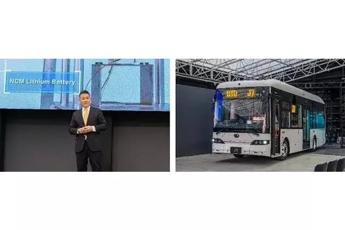 初公開となるEVバス「J7」から登場。「EVトラックの日本導入」「PHEVの日本導入」、を発表