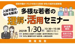 この度、「コミュニケーションが苦手」「グレーゾーンの傾向がある」など働きづらさを抱える若者をいかに活用するかを学ぶ、市内事業者向け「多様な若者の理解・活用セミナー」を開催しましたのでご報告いたします。。
