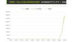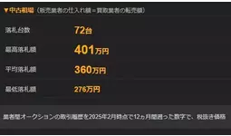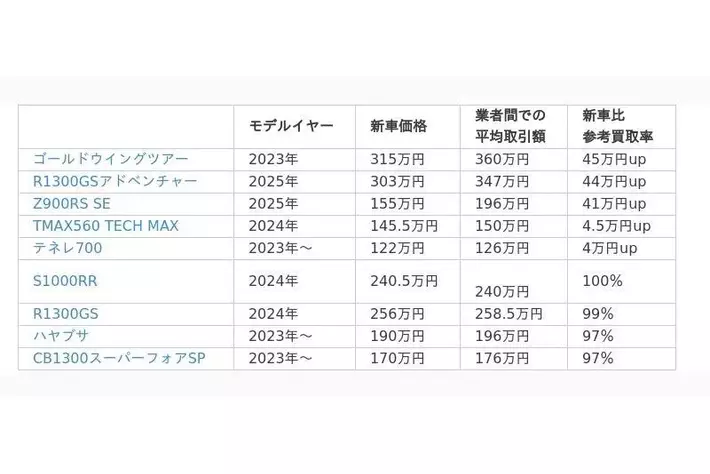(2)モデルイヤーについては3台以上の取引記録がある年式のみを対象にして最も高年式なモデルを選別した(2025年モデルが1台で2024年モデルの取引履歴が3台の場合は2024年モデルの数字とした)