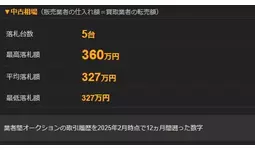 業者間の平均落札額(買取業者の平均転売額)は360万円であるが、実際の買取査定額も360万円付近になるかは注意が必要だ。