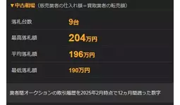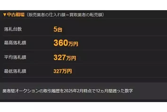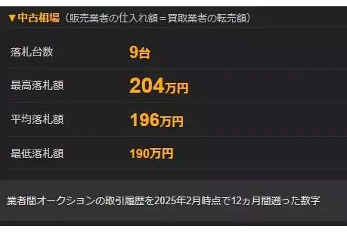 ※平均落札額は業者間オークションのデータを2025年2月時点で12か月間遡った金額