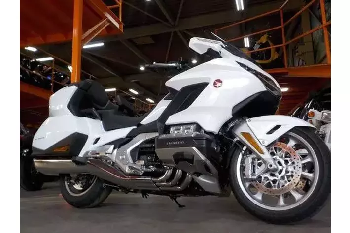 第1位は、ゴールドウイングツアーの現行2023年モデル。 1975年発売のGL1000からHONDAのフラッグシップで有り続けるゴールドウイング。2018年のフルモデルチェンジで6世代目SC79型GL1800へと進化を果たし、現行2023年モデルではリアトランクとDCTを標準装備した それまでの最上位グレード「ゴールドウイングツアー」に国内モデルは一本化された。