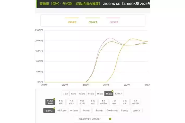 直近1年間の業者間での取引額|Z900RS SE 2025モデル