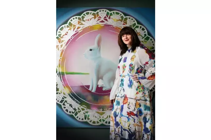 ベースとなるのは『Fire Festival』と題された中質ペインティングで、力強さと優雅さが共存する独自の表現を持っています。その表現は、「エクストレイル」が掲げるデザインテーマ「タフギアと洗練の融合」と共鳴し、コラボレーションの実現へと繋がりました。 「エクストレイル」と絵画を一体化させることで、作品は一つのアートへと昇華されました。タフで上質な「エクストレイル」のエクステリアとペインティングの掛け合わせ、そして 「エクストレイル」の特徴であるシェルブロンドカラーが松村さんのアートに加えられ、作品全体としての一体感が生まれました。さらに、本来アートと相入れない場所であるまちなかの駐車場を展示スポットにすることで、異なる二つの要素が同居するアート鑑賞空間を表現しています。