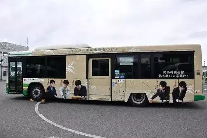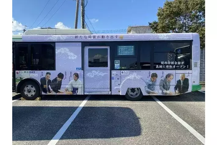 関西将棋会館移転をPRするため計12台のバスが市内を運行中