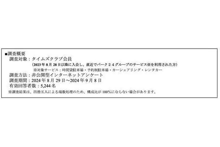 ※入会金・年会費無料の会員制ポイントプログラム。タイムズパーキングやタイムズカー、タイムズカーレンタルの利用等でポイントがたまる他、会員限定サービス等を提供。会員数1,208万人(2024年12月末現在)。なお、本アンケートは、駐車場やカーシェアリング、レンタカー等のクルマに関わるサービスを利用した方々を対象としたものです。