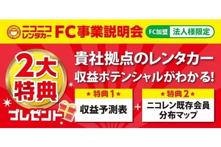今ならFC事業説明会で2大特典をプレゼント!ぜひご参加ください!・自動車関連業で多事業展開をご検討中の方