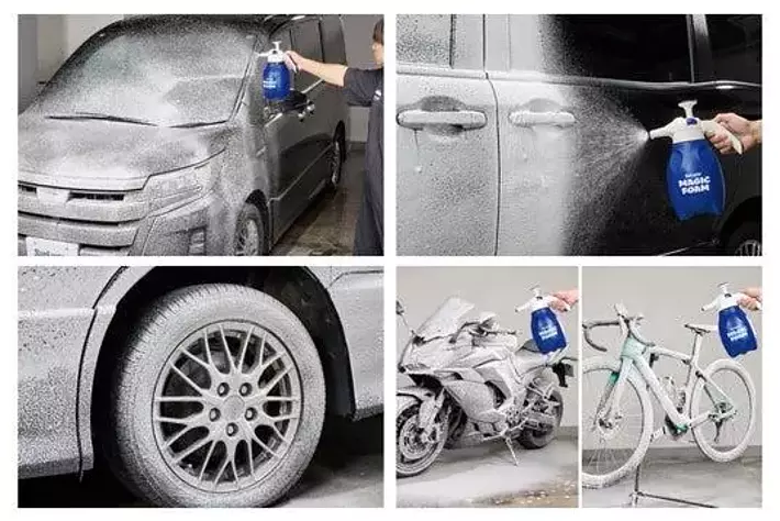 高圧洗浄機と接続することで、自宅でプロ仕様の泡洗車が可能に。広範囲に瞬時にシャンプーを噴霧でき、短時間でスピーディーに洗車が完了します。