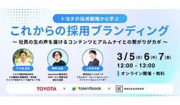 3/5(水)12:00~ 無料オンラインセミナー『 トヨタの採用戦略から学ぶ、これからの採用ブランディング 社員の生の声を届けるコンテンツとアルムナイとの繋がりがカギ』を開催