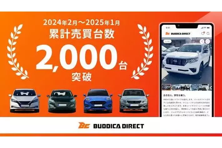 WebやLINEのやり取りだけで中古車販売を全国規模で展開するバディカダイレクト株式会社 (URL: https://buddica.direct /本社:東京都渋谷区 / 代表取締役社長:中野 優作)は、2024年1月24日に創業。“満1才”を迎えた2025年1月24日時点で、累計売買台数2,000台を突破しました。