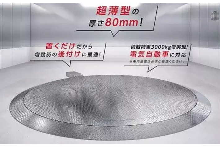 駐車場や店舗の床に置くだけで設置できる「ピットレスターンテーブル」を開発!車が乗り入れしやすい超薄型の厚さ80ミリを実現