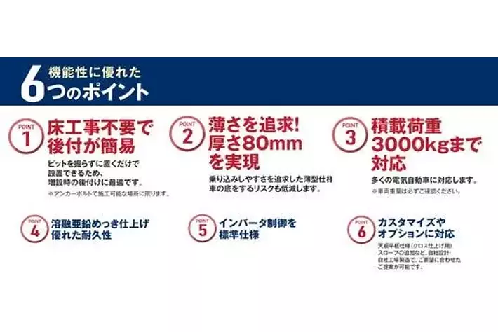 積載荷重3000kgで多くの電気自動車に対応