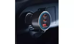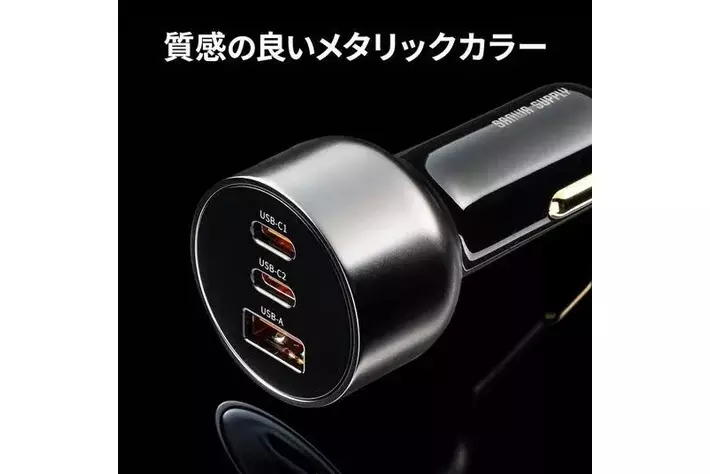3台同時充電が可能で、質感の良いメタリックカラーのカーチャージャー