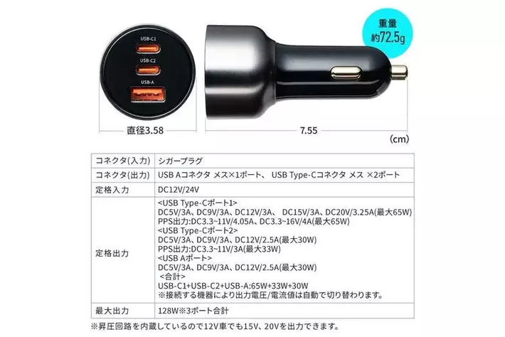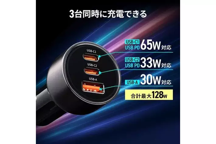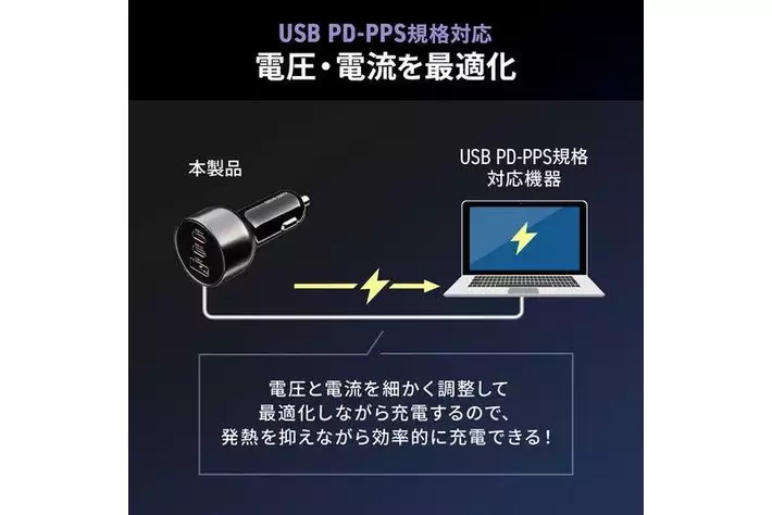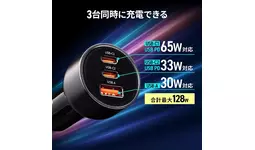 スマートフォンからノートPCまで幅広く対応する最大65W出力のカーチャージャー2月21日に発売