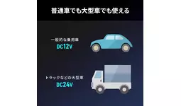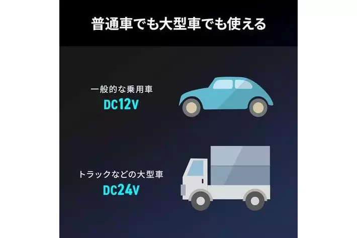 普通車(12V)からトラック(24V)まで幅広い車両に対応。営業車や配送トラックなど、長時間の移動を伴うユーザーにも最適です。仕事中やレジャー時でも、車内で充電環境を確保できます。