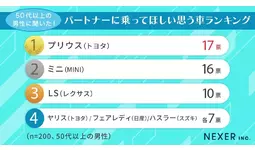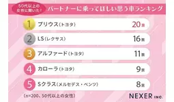 一方、50代以上の女性は、実用性と燃費の良さを重視し、「プリウス」が1位に。また、高級感のある「LS」も引き続き人気を集めました。
