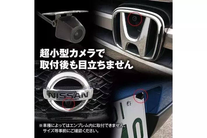 カメラ本体のサイズがなんと一円玉より小さく、エンブレムやナンバープレート上部に隠すこともできるので取付後も目立ちません。