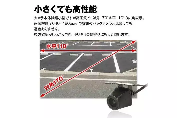 カメラは超小型ですが高画質で対角170°水平110°の広角表示を実現。