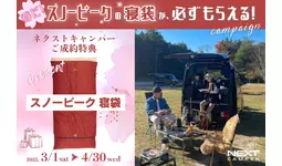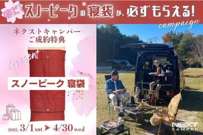 株式会社ブレイズ(愛知県名古屋市、代表取締役:市川秀幸、以下ブレイズ)は、2025年3月1日(土)~4月30日(水)の期間、軽キャンピングカーキット「NEXT CAMPER(以下、ネクストキャンパー)」をご成約いただいたお客様に、スノーピークの寝袋をプレゼントするキャンペーンを実施いたします。
