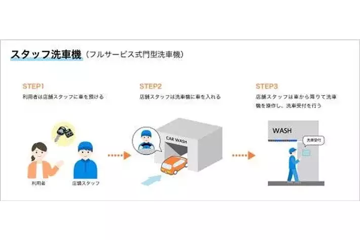 ※スタッフ洗車機:店舗スタッフが利用者の車と洗車機を操作して洗車を行う、フルサービス式の門型洗車機