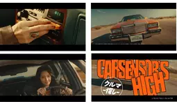 CMの内容は、カセットで曲をかけるシーンからスタート。『カーセンサー』カラーのオレンジ色の車に乗った菜々緒さんとカーモのドライヴが始まります。長く続く一本道を走りながら、ドライヴに気持ちよくなった菜々緒さんは『Driver’s High』の歌詞を口ずさんでいるようで、助手席のカーモも何だか楽しげな様子。CMの中では冒頭のカセットを差し込むシーンや、一本道で車を走らせる疾走感のあるシーン、さらに「Carsensor’s High」の文字が画面いっぱいに出てくるシーンなど、どこを切り取ってもMVを感じさせ、見れば見るほど楽曲ファンにも楽しんでもらえるような演出にも注目です。