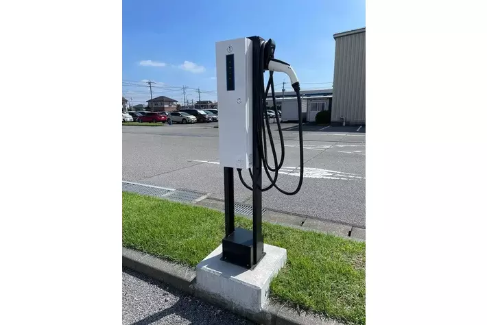 駐車場内に充電設備(AC200 V・出力6 kW)2基を設置しています。お客様・当社社員が使用できます。