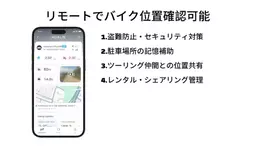 愛車の位置情報をスマートフォンで常時確認可能。大型駐車場での置き忘れ場所の特定から、不測の事態における位置追跡まで、バイクの所在が常に把握できる安心感をお届けします。