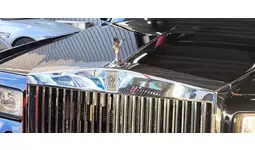 ロールス・ロイスの外装は、クラシカルなエレガンスと現代的なモダンさが見事に調和したデザインが特徴です。志村けんさんの愛車であったロールス・ロイスも、その特徴を余すところなく維持していました。特に、縦長のフロントグリルは、「パルテノン神殿」をイメージした威厳あるデザインで、シンボルである「スピリット・オブ・エクスタシー」のエンブレムと相まって圧倒的な存在感を放っていました。ボディの光沢や塗装の状態も非常に良好で、長年にわたり大切に扱われてきたことが窺えます。