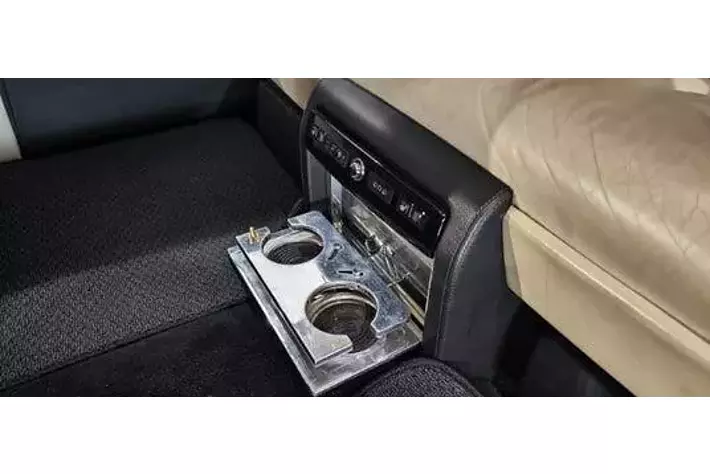 後部座席には、シャンパンスタンドも備えられており、特別なゲストをもてなすための配慮が随所に感じられます。芸能界の仲間たちと楽しい時間を過ごしていた情景が目に浮かびます。このシャンパンスタンドは、ラグジュアリーな空間をさらに格上げし、志村さんのこだわりが感じられる装備です。