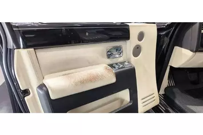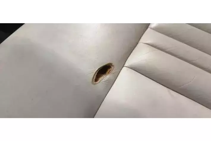 後部座席にはタバコの焦げ跡が見られます。志村さんは、移動中にもリラックスしてタバコを楽しむことが多かったと言われており、この焦げ跡は、志村さんが実際にこの車を利用していた際についた焦げ跡ではないでしょうか。