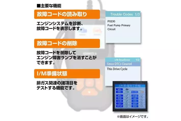 車両故障コードを迅速に読み取ります。故障コードをクリアする機能も搭載。