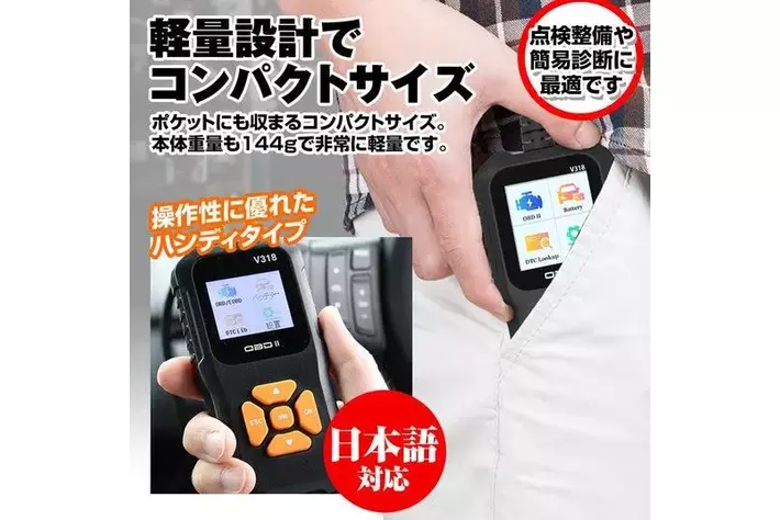 コンパクトで軽量なハンディタイプのOBD2診断機なので非常に取り扱いが簡単です。