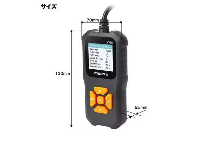 9つのOBD2/EOBD標準プロコトルに対応の機能車両故障診断装置です。
