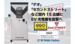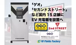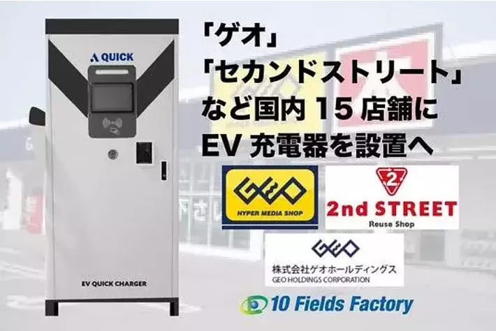 テンフィールズファクトリー株式会社(京都府相楽郡精華町光台1-7 けいはんなプラザ9F CEO:市川 裕)は、株式会社ゲオホールディングス(愛知県名古屋市中区富士見町8番8号OMCビル 代表取締役社長執行役員:遠藤 結蔵)が運営する「ゲオ」や「セカンドストリート」など国内16店舗にEV超急速充電器を設置いたします。