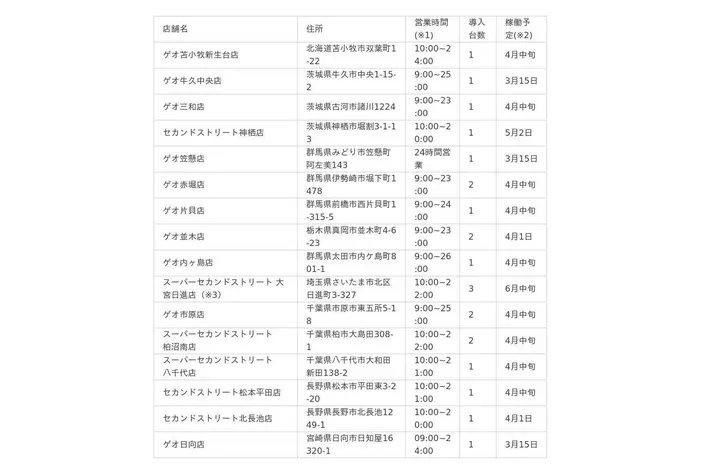 (※3)スーパーセカンドストリート大宮日進店は、設置済みEV充電器を撤去後、新しい充電器の設置を予定しています。