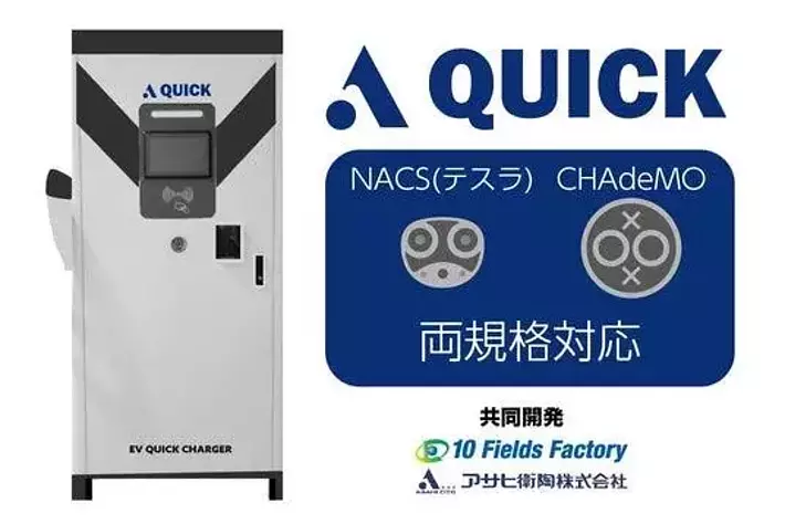 今回設置する充電器はテンフィールズファクトリー株式会社と、アサヒ衛陶株式会社(大阪市中央区常盤町1丁目3-8 中央大通FNビル10階 代表取締役:石橋 孝広)が共同開発した、「A-QUICK」を設置いたします。