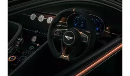 キャビンに足を踏み入れると、深みのあるダークトーンのレザー、ファシア、ファブリック素材が広がり、その中でローズゴールドの輝きが際立ちます。自動車業界初となる金属を層ごとに積み重ねて精密なパーツを作り出す革新的な製造方法であるベントレーの金属積層造形(AM)3Dプリンティング技術により、最大210グラムのホールマーク付き18Kローズゴールドが随所にあしらわれています。ドライバーモードセレクターや、ベントレーの象徴であるオルガンストップ式のエアベントコントロール、さらにステアリングホイールのローズゴールド製インサートマーカーなど、運転時に触れる主要なポイントに施され、ビスポークの精緻なクラフツマンシップを際立たせています。