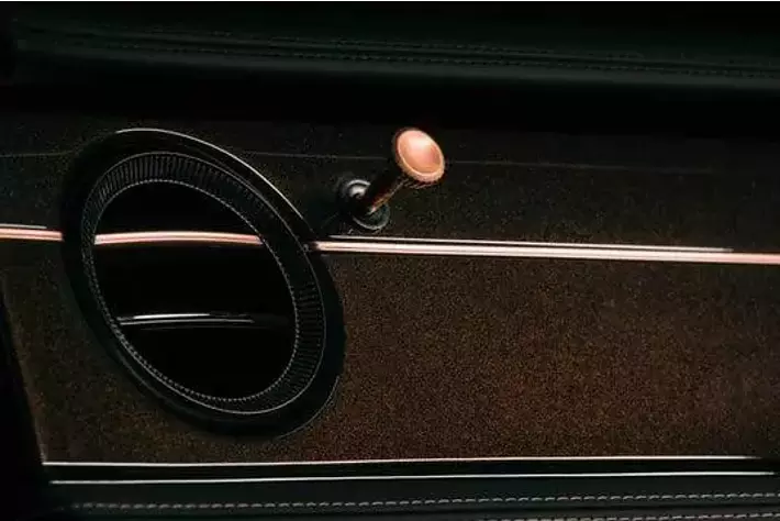 ローズゴールドの輝きを引き立てるのは、深みのある素材が織りなす調和のとれた空間です。リッチなベルーガレザー、チャコールグレーのツイードファブリック、そしてエクステリアと呼応するBlack Roseメタリック塗装が施されたヴェニアが、キャビン全体をシックで洗練された雰囲気に包み込んでいます。