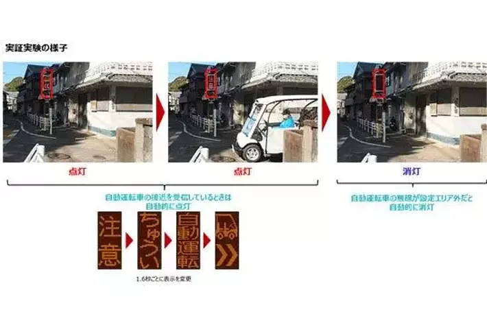 積水樹脂株式会社(本社:大阪市北区、代表取締役社長 兼 CEO 馬場浩志、以下「当社」)は、自動運転車両を使って高齢者向けの移動支援を行っている和歌山県太地町にて、自動運転車両の接近をLED表示板(オプトマーカーV)にて、歩行者に注意喚起する実証実験に2月14日(金)より3月13日(木)まで1か月間参画いたしました。本実験は、国土交通省 近畿地方整備局 紀南河川国道事務所の発注で、株式会社オリエンタルコンサルタンツ(本社:東京都渋谷区、代表取締役社長 野崎 秀則)が全体の企画提案と各種調査・検証を実施し、当社はITS(※)技術を活用した自動運転車両の接近をお知らせするシステムを提供しています。