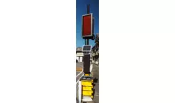 また、LED表示板をより確認していただくため、LED表示板点灯時には、下部に設置した注意喚起灯(サンデリーIII)を点灯させ、LED表示板(オプトマーカーV)の誘目性を高めております。