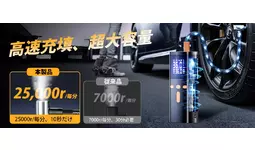 本製品は大容量7800mAhのリチウム電池を搭載しており、約2時間でフル充電が可能です。1回のフル充電で、自転車タイヤに30回、バイクタイヤに32回、車用タイヤに36回、ボール用タイヤに9回対応できます。さらに、内蔵のターボコンプレッサーは毎分25,000回転の高性能モーターを採用し、わずか10秒で車のタイヤに空気を充填できます。パワフルな性能と長寿命設計により、長期使用に最適です。