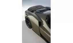 N-LARGOのボディはもちろん軽量かつ高強度なカーボン製であり、今回の296GTSにおいては、純正比で、フロント+6cm、リア+12cmというワイドボディ化を行いました。