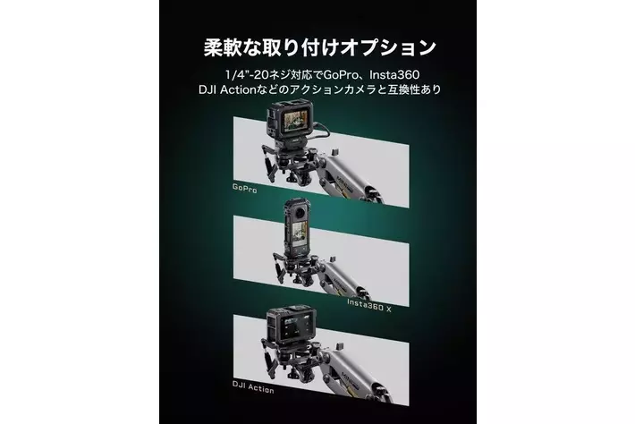この新しい衝撃吸収ヘッドは、多軸安定化システムを採用しており、アクションカメラ撮影時の振動や高周波振動を大幅に軽減します。これにより、特にアクションシーンで求められる安定した映像撮影が実現されます。