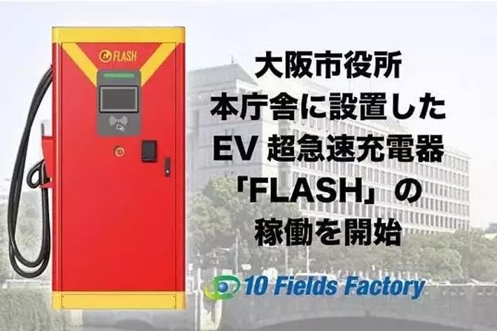 テンフィールズファクトリー株式会社(本社:京都府相楽郡精華町光台1-7 けいはんなプラザ9F、CEO:市川 裕)は、大阪市役所本庁舎(大阪市北区中之島1-3-20)に設置したEV超急速充電器「FLASH」の稼働2025/3/18 午前9時から開始いたしました。