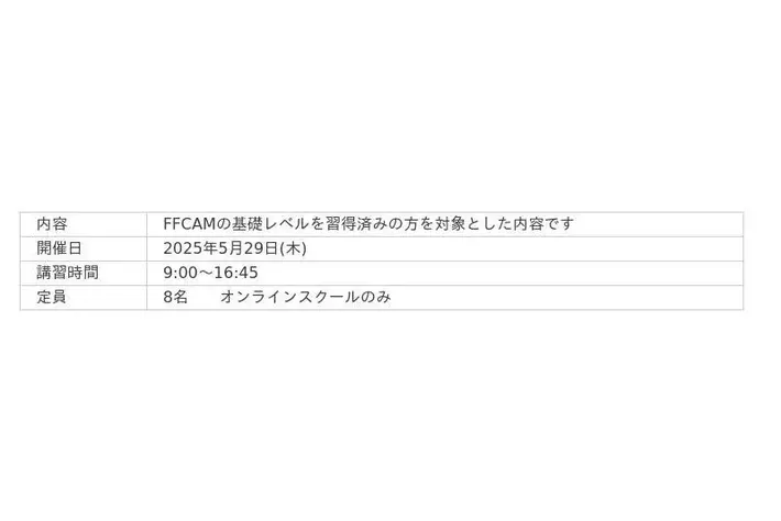 FFCAM 保守契約中ユーザー向け 無償スクールを開催!