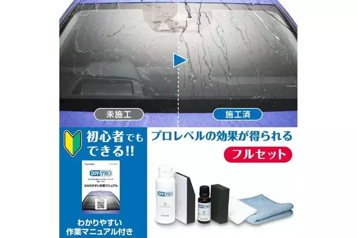 プロショップで採用の撥水コーティングを自分で施工できる「DIY-PRO 撥水ウィンドウコーティング」を発売。初心者も作業しやすいマニュアルやツールを付属し、ガラスのクリーニングからコーティングまでをサポート。