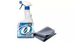“拭きムラゼロ”のガラスクリーナーから、外窓にも使える大容量スプレーが登場。高性能クロスも付いてクリアな仕上がりを実現